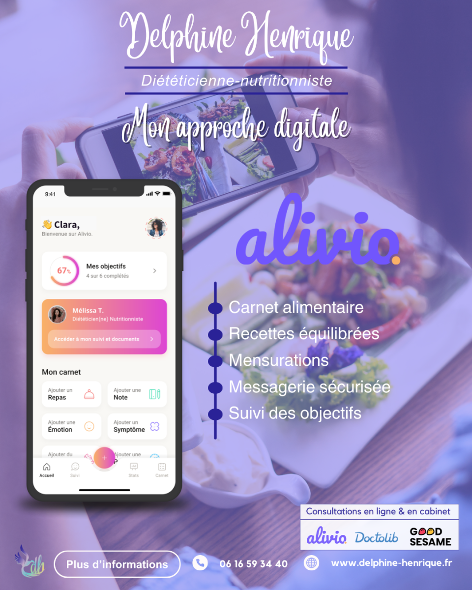 Grâce à l’application Alivio, je vous propose un suivi encore plus complet et interactif :